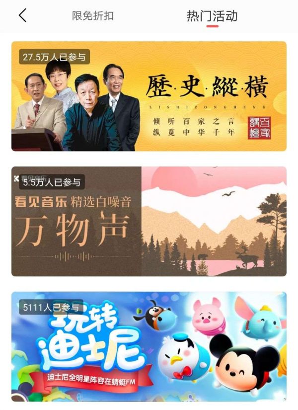 越来越多的年轻人开始从短视频带给人的即时愉悦中逃离,以求填补知识空白与信息焦虑。如果说“B站学习热”是年轻人知识性内容偏好在2020年的爆发式呈现,那么长音频的破圈将会是这一文化潮流在2021的延续。从蜻蜓FM的热门活动中就可以看到,与历史有关的百家讲坛活动成为人数参与最多的一项。
