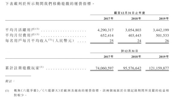 根据招股书显示,2017年至2019年,祖龙娱乐平均月活用户从429.03万降至344.22万,降幅为19.77%;当期平均月付费用户从65.24万降至50.15万,降幅为23.13%;玩家付费转化率也从15.21%降至14.57%;每名用户每月平均收入分别为25元、24元和26元。