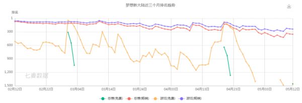 不过,七麦数据显示,其新游《梦想新大陆》自2021年1月上线以来,关注度不断下滑,很难称为爆款游戏,后续表现颓势已显。