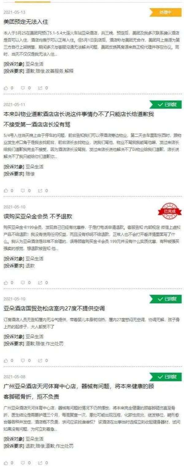 在黑猫投诉上也有不少关于亚朵酒店的相关投诉,包括“预定后无法入住”、“不提供空调”、“误购会员后不予退款”等,甚至出现酒店器械砸伤住客后拒不负责的情况。