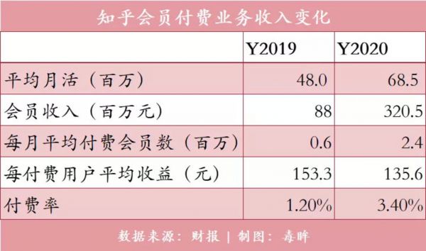 隐忧已经出现。2019-2020年,知乎月活增长42.7%,付费率从1.2%增长至3.4%,但ARPPU(每付费用户平均收益)下降11.5%。