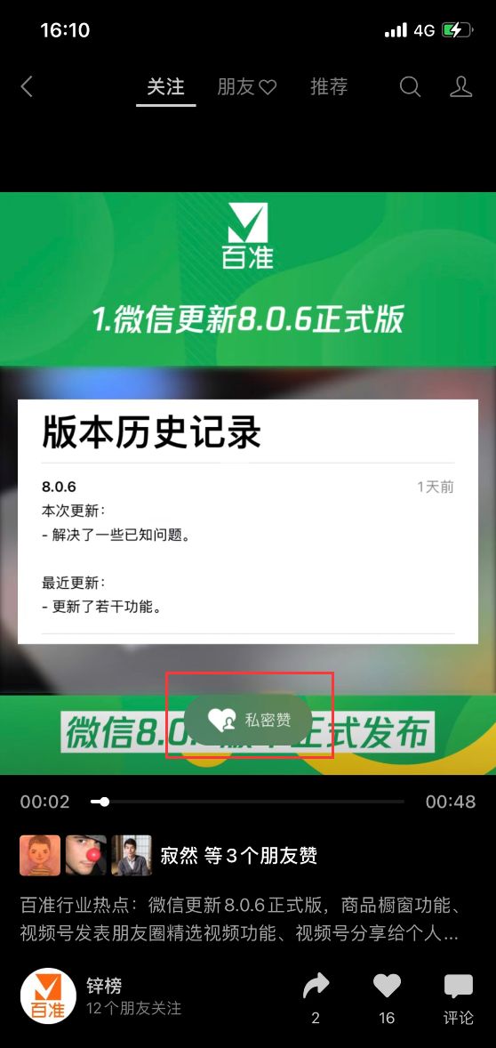 视频号私密赞的按钮,调整放到了视频中间