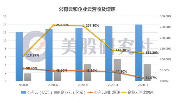 但是,从上图上看出,本季度公有云增速明显下滑,同比增长仅14.97%,远远低于前面几个季度。为何会出现这种情况?