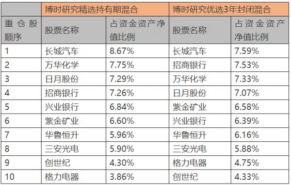 此外,还有两家公募基金赫然出现在名单的第九位和第十位,分别是“博时研究优选3年封闭运作灵活配置混合型证券投资基金”(以下简称“博时研究优选3年封闭混合”)和“博时研究精选一年持有期灵活配置混合型证券投资基金”(以下“简称博时研究精选持有期混合”)。且两家基金的管理人均为博时基金。