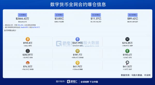 随后,ARK女股神、马斯克等币圈大佬相继发声,加密货币市场终于止跌反弹。但在过去24小时,83万人爆仓近90亿美元,最大单笔爆仓在火币交易网,价值6700万美元。造富神话瞬间破灭。