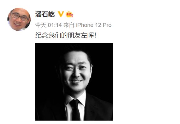5月21日凌晨1点14分,soho中国董事长潘石屹也在微博表示:纪念我们的朋友左晖。