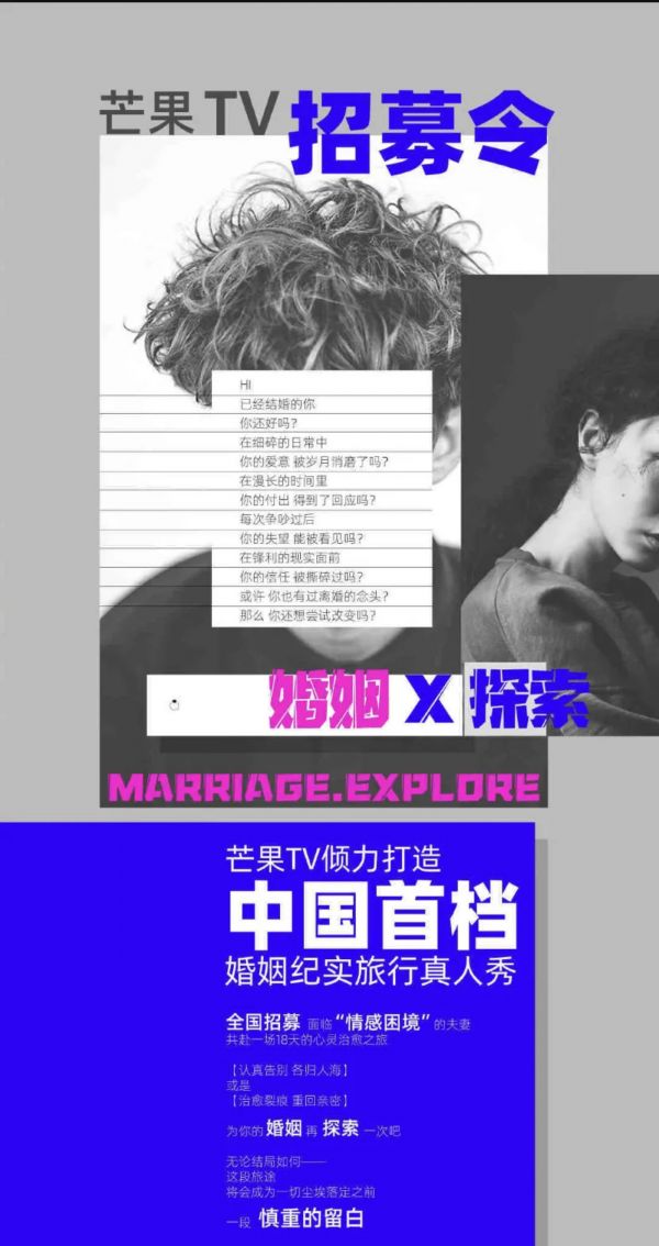 芒果TV《婆婆和妈妈》聚焦始终处于社会话题中心的婆媳关系,爱奇艺《我的岳父大人》选择了翁婿,腾讯视频则计划推出一档离婚夫妇观察综艺《亲爱的,不爱的》,而在不久前的芒果TV春招会上,芒果TV也官宣了一档同类型综艺《再见爱人》。
