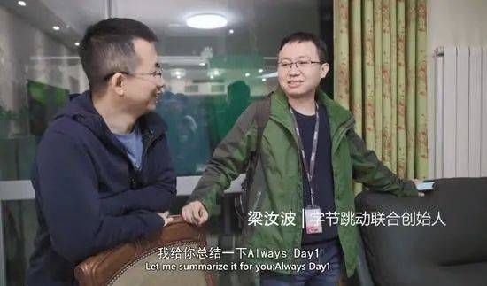 张一鸣和梁汝波重新回到字节跳动成立之地,回忆起创业时的场景:每天站在阳台上吃饭,菜和饭和肉都放在一个碗里;也曾因环境比较一般,被应聘者拒绝。