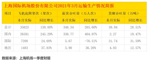 好消息是,3月份,上海机场的国内航班出现较大幅度提高,国内飞机起降架次同增长245.29%,旅客吞吐量404.07%增长。