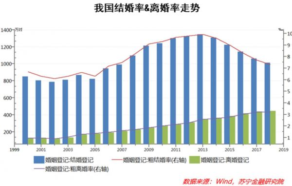 数据显示,近些年我国结婚率不断下降,离婚率却日益上升(见下图),再加上很多人婚恋观念转变、人际圈子小、工作繁忙等现实因素的掣肘,我国单身人士的规模已经非常庞大。根据民政部的统计,我国单身成年人口多达2.4亿,这一数字甚至比俄罗斯和英国的总人口数之和还要多。不少市场机构预测,我国未来单身人口将达到4亿。