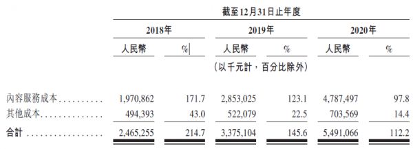 从成本支出看,与音乐版权内容相关的内容服务成本一直高企,2018年至2020年占平台收入比例分别为172%、123%及98%。至今仍蚕食了网易云几乎所有收入。