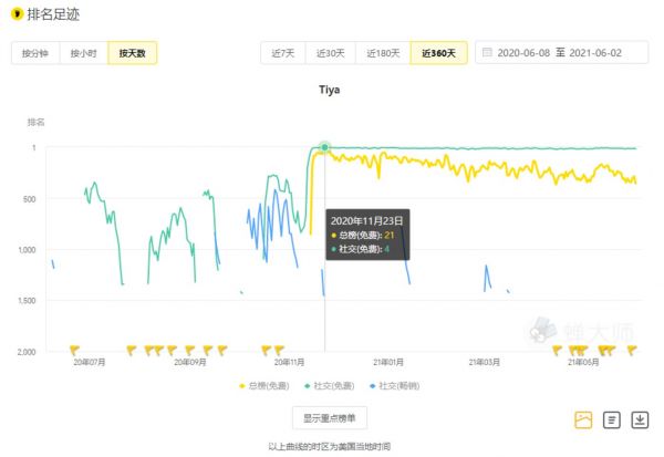 TIYA成绩最好时一度拿到了美国地区iOS下载总榜的第21名,今年第一季度也一直在总榜100名左右徘徊。而TIYA的秘诀就是打出“帮用户寻找游戏队友”的牌,并蹭上了众多热门游戏的热度。