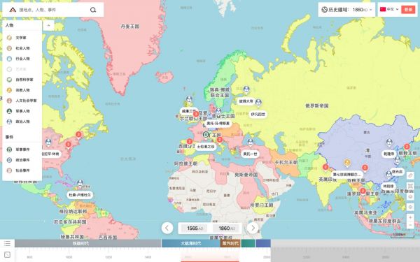 相比于华夏万象的一己之力与回形针手册的“人海战术”,全历史试图借助于AI引擎之力,对于人类文明的进程和成果做全面、整体的梳理、挖掘。通过时间地图和关系图谱,从时、空、人等不同的维度为知识建立“秩序”,发现历史深处的隐秘关联。这比维基百科单一的链接方式,无疑要丰富许多。