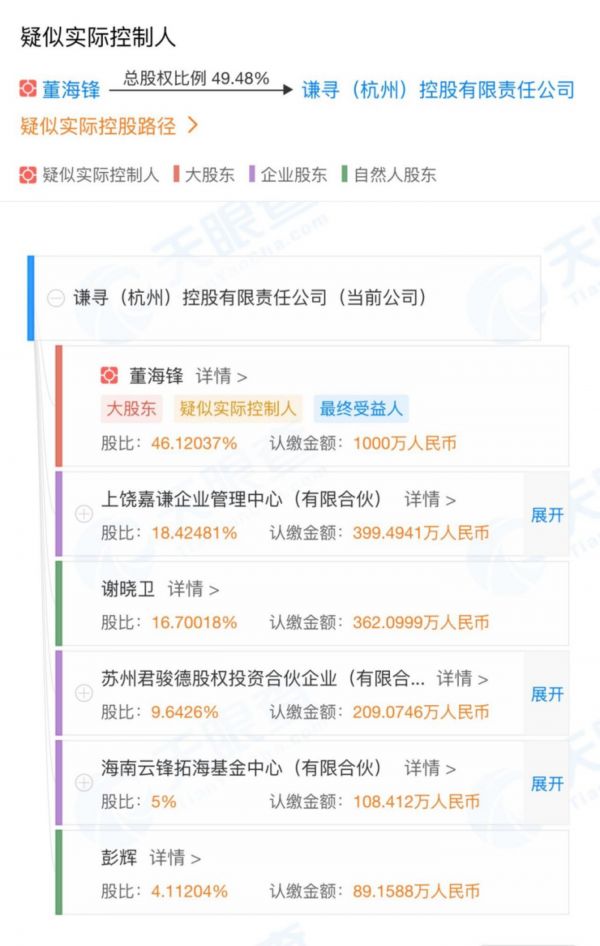 今年4月,谦寻控股再发生多项工商变更,其中投资人新增海南云锋拓海基金中心(有限合伙),持股比例显示5%。也就是说,继君联资本入场后,知名PE云锋基金也低调入股了薇娅的公司。