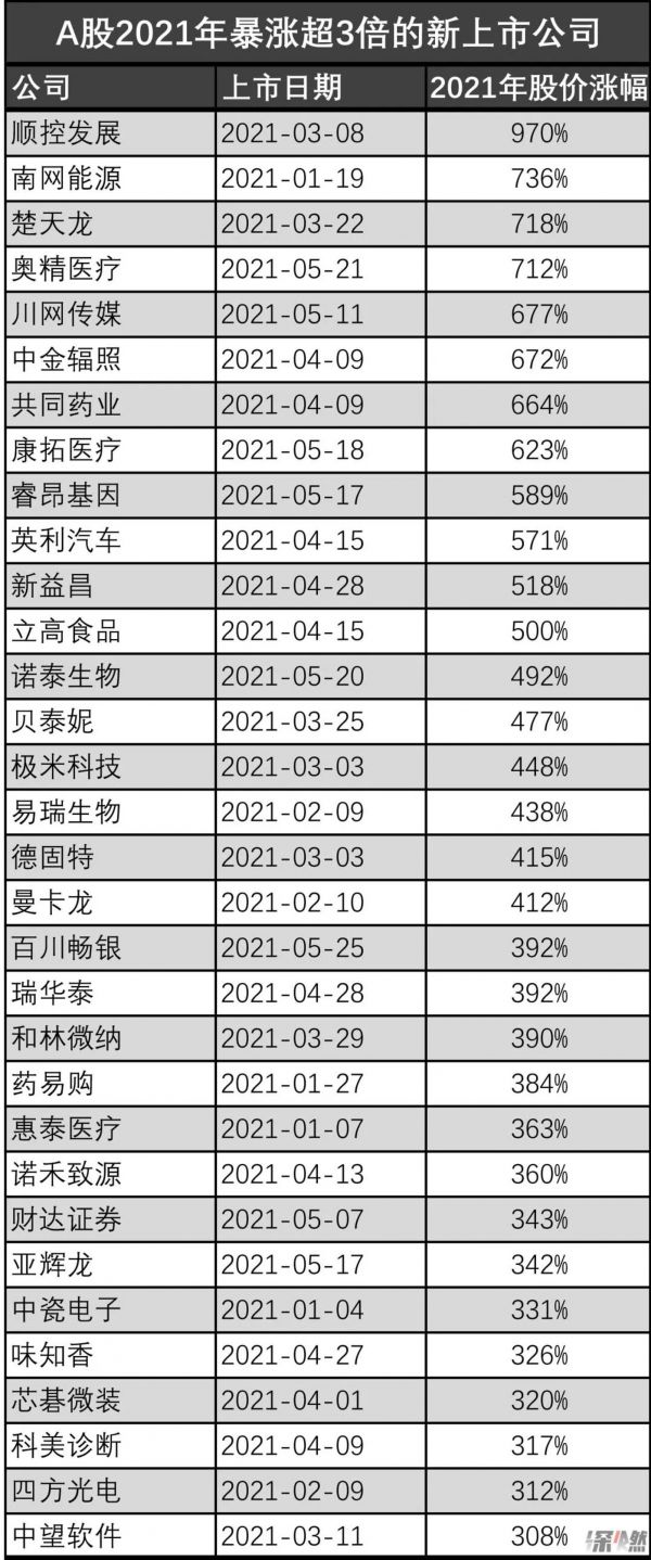 A股上市股价暴涨的公司(数据截至2021年5月31日)