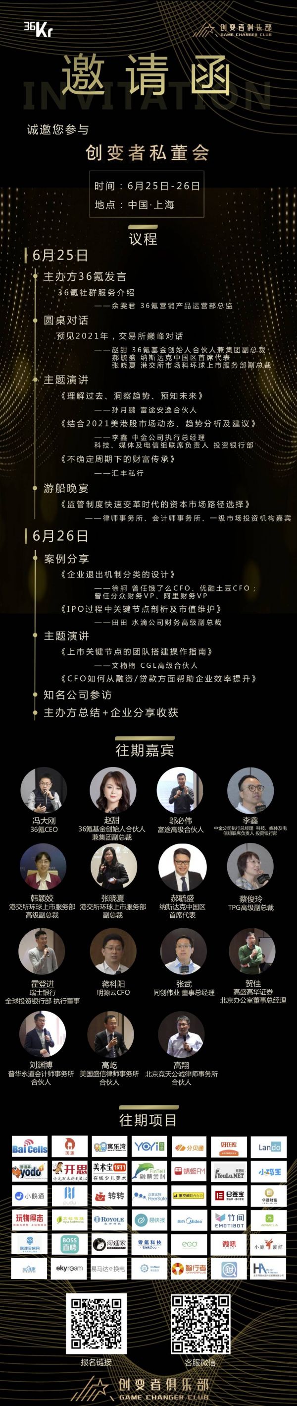 在这一背景下,36氪举办的2021年第三期创变者私董会将于6月25日-6月26日在上海举办。与此前的私董会举办目的略有不同,本期私董会与其说是要给出针对上述话题走向的答案,不如说是在构建对资本市场的新认知。