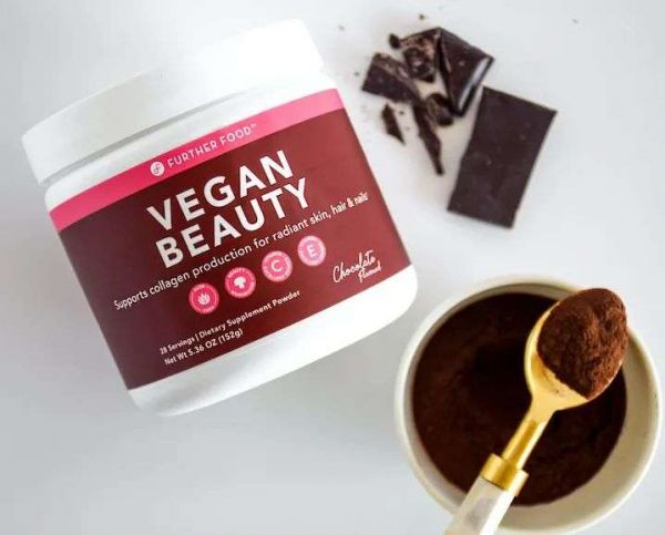 旧金山的Further Food公司旗下就有一款素食美容巧克力粉名为Vegan Beauty,食用后可以帮助人体生成胶原蛋白,使皮肤、头发和指甲焕发光彩。这款产品富含芦荟、Acerola浆果、银耳蘑菇、豌豆蛋白、椰子油以及可可粉共6种优质植物成分,不仅可以促进维生素C和E的吸收,还能锁住水分,改善皮肤弹性,对抗黑斑及色素的沉着,同时帮助脂肪燃烧、支持酮体生成,为机体提供丰富的能量。