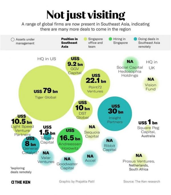 一些开始布局东南亚的国际风投机构,这意味着东南亚会发生更多融资事件 | 来源:THE KEN