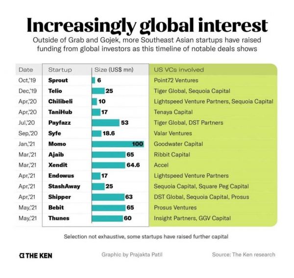 除了 Grab 和 Gojek,越来越多东南亚公司获得国际资本投资 | 来源:THE KEN