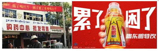 东鹏特饮可以被看作是“低配版红牛”,不管是广告词还是定价都透露着一股“正品山寨”的味道,2009年东鹏推出pet瓶塑胶瓶装,产品开始全面模仿红牛,包括了产品配方、包装颜色和这句广告语。