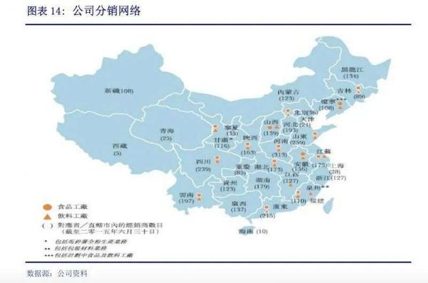 而达利集团经销商在2015年就达到3951位,覆盖率远远大于东鹏,在2015年的达利集团招股书上有明确写到,全国在建16个战略性布局生产基地,包括32个食品及饮料相关工厂。