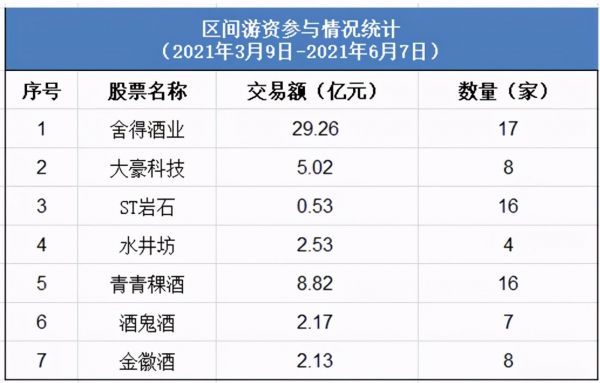 不过,各家交易额的表现,却拉开了“贫富”间的差距,游资在舍得酒业上的交易额接近30亿,其他公司望尘莫及。