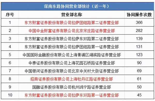 通过统计,我们发现答案是:招商证券股份有限公司深圳深南东路证券营业部(下称:“深南东路”)。