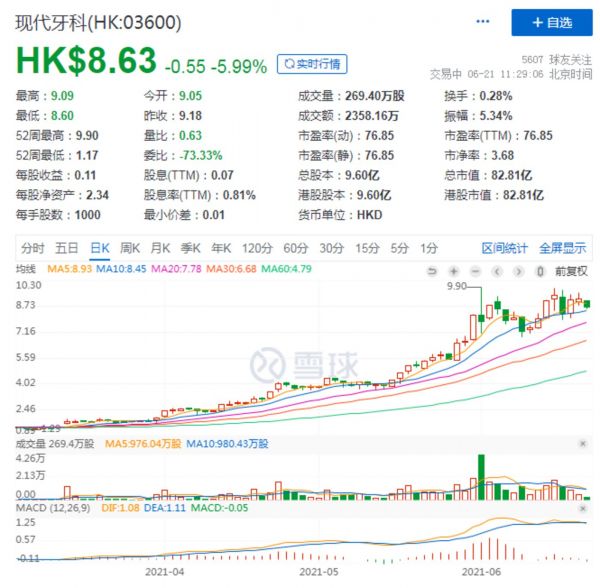 6月21日,最新走势显示,现代牙科年内涨幅超507.75%,单股涨额达到8.63港元,并且股价还有持续上涨的趋势。