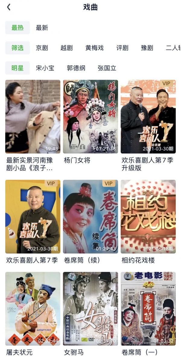 优酷为“广场舞”和主打经典影视剧的“高清剧场”在APP主页设置了入口栏,腾讯视频也在生活频道内单独细分了“广场舞”专区。而在爱奇艺主页搜索栏输入“戏曲”,能跳出包含京剧、越剧、黄梅戏等多个剧种的内容库。