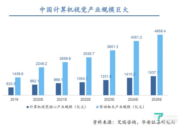 目前,计算机视觉已成为人工智能中技术率先取得较大突破。据艾瑞咨询的统计,2025年中国计算机视觉核心产业规模将至1537亿元,这相较2019年的633亿元有着较大的增长空间,产业规模巨大。