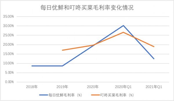 但我们也注意到,2021年Q1,每日优鲜毛利率又开始弱于叮咚买菜,这极有可能是企业未能在涨价中获得理想的结果,转以价格示好用户。