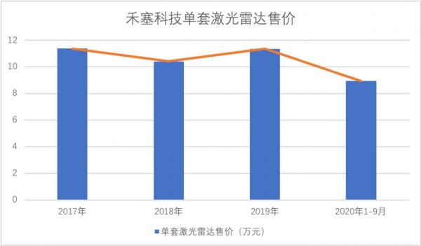 从2017年到2020年1-9月,禾塞科技单套激光雷达售价压缩了27%,单套售价下调接近3万元,从供应链角度思考,单套激光售价降低对车企显然是个好消息。