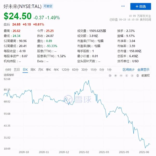由于教育领域政策的暗流涌动,加之疫情红利退潮,高瓴清仓了原本持仓4.05亿美元的好未来,在此之前,它已经连续几个季度对教育股分批减仓。目前,好未来股价已自一季度高点跌去70%有余,市值不足巅峰时的三分之一。