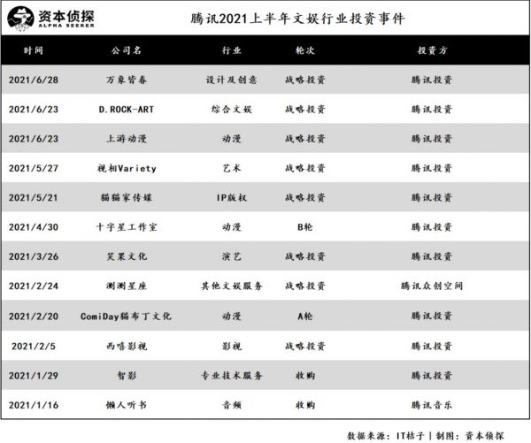 矮子里面拔高子,在冷冷清清的文娱投融资市场,腾讯是相对活跃的那一个。