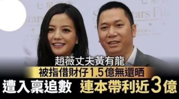 赵薇的丈夫黄有龙,最近因拖欠1.5亿港元的贷款被告上法庭。