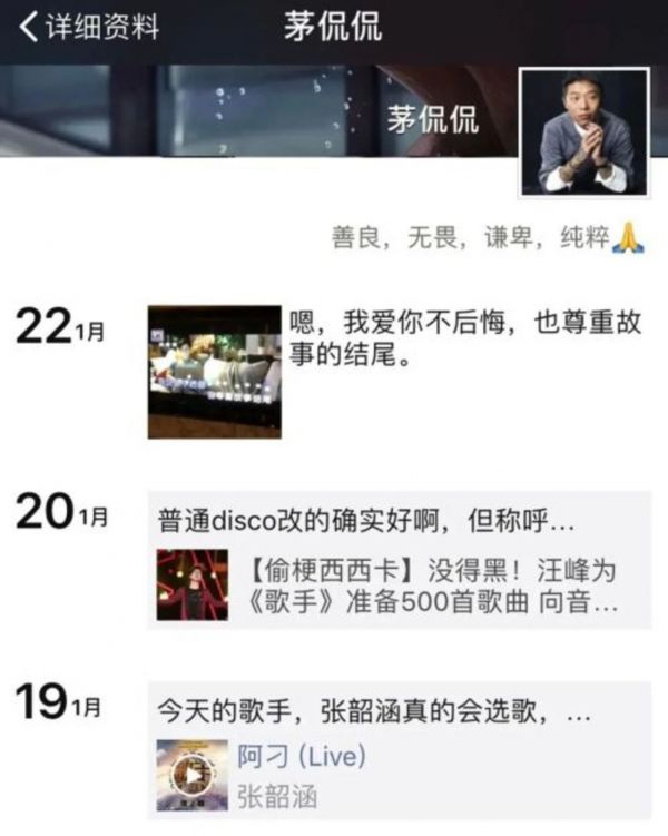 茅侃侃的朋友圈(图源:知乎)