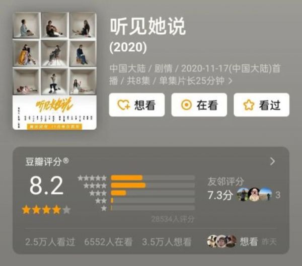 2020年11月,女性独白剧《听见她说》上线,豆瓣评分达8.2。赵薇作为发起人、监制和导演,接受了不少媒体采访,谈创作经验、女性困局。