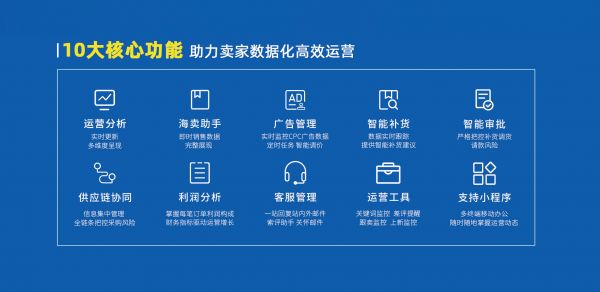 在这样的市场选择下,「积加」的产品也更贴合其用户需求。张华俊对于跨境电商ERP产品的理解是:“帮助电商卖家进行精细化管理和数字化的一站式解决方案。”张华俊判断SaaS未来将会是一个“产品为王”的领域。比起开发定制化产品,「积加」更想为更多不同规模的电商卖家提供解决方案,从而降低开发成本,实现规模化发展,通过迅速迭代的产品优势形成竞争壁垒。目前,「积加ERP」有10个模块的产品,包括运营分析、海卖助手、广告管理、智能补货、智能审批、供应链协同、利润分析、客服管理、运营工具、支持小程序,可以覆盖一家跨境卖家产品数据、对接金蝶的业财一体、供应链协同等多环节的深度需求。