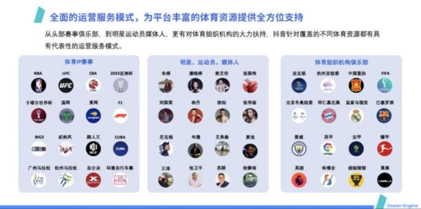 抖音亦如是。《2020抖音体育生态白皮书》显示,包括皇家马德里、拜仁慕尼黑、巴塞罗那、曼城等在内的球队已经入驻抖音,而郭艾伦、潘晓婷、贝克汉姆、艾弗森、尼克杨等体育明星均已拥有超过百万的粉丝量。