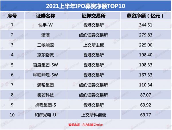2021上半年IPO盘点:哪家公司登顶“募资王”?