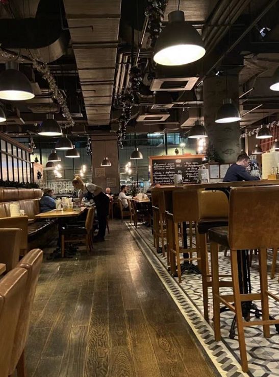 这是一家以海鲜为特色但用酒吧风格装修的餐厅。这类“餐吧”(Bistro)无疑是莫斯科的特色,我去过莫斯科不少这样的地方,除了美食,他们还会用上轻摇滚伴奏,在满足味蕾欲望的同时让你感受视听盛宴。在觥筹交错中,你可能会和朋友们摇头晃脑起来,以此来表达自己得愉快心情和对这家饭店美食的敬意。