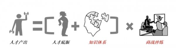 过去,企业面对相对确定的市场环境,组织内是标准化的分工,对应标准化的知识体系,只需要进行标准化的培训即可。因此,传统的人才培养公式是:人才产出=人才底版+课程体系。