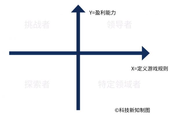 参考魔力象限定义法则,划分四个象限为:领导者(第一象限)、挑战者(第二象限)、探索者(第三象限)、特定领域者(第四象限)。