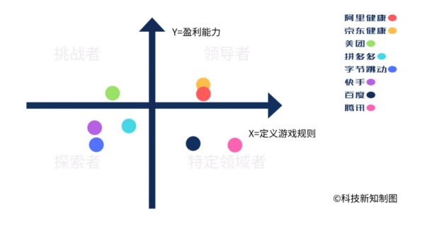建立坐标系为分析模型,以(能否定义游戏规则,能否盈利)为坐标,即X=定义游戏规则,Y=盈利能力,其中,X轴的参考因素有:市场占有率,用户心智占有率,营收等;Y轴的参考因素有:自身盈利能力,是否为集团业务输血。