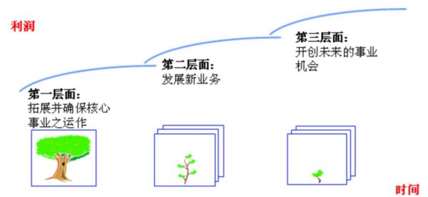 按照麦肯锡三层面理论,所有不断保持增长的大公司,共同特点是保持三层面业务的平衡发展:第一层面是拓展和守卫核心业务,第二层面是建立新兴业务,第三层面是创造有生命力的候选业务。通过保持新旧业务更替的管道畅通,一旦出现减退势头便不失时机地以新替旧,是企业保持增长的诀窍。