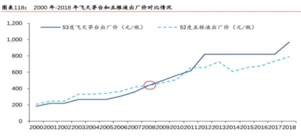 在定价上,2008年之前五粮液一直掌握提价主动权并且价格在茅台之上,五粮液提价较为频繁,而茅台提价有自己的节奏,两者价格相差幅度在80元左右,自2006年开始茅台提价加速,而五粮液提价幅度已经有限,直到在2008年之后茅台价格首次追平五粮液,并逐步掌握定价主动权,此后,五粮液不得不采取逐步跟随的价格策略。