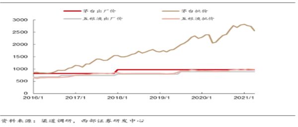 从终端价格上来看,茅台3000元左右,五粮液1100-1200元区间,巨大的价格差已经说明茅台行业地位和品牌强度,茅台巨大的指导终端差,以及产品的供不应求,形成了高端需求外溢,这对于行业其他高端产品也形成机会,如五粮液、国窖、青花郎等。