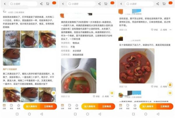 图 | 电商平台上有很多低价即食小龙虾的负面评论