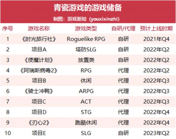 招股书披露,截至2021年6月20日,青瓷游戏拥有10款移动游戏储备,品类从Rogue-like RPG拓展至SLG、ACT、STG以及ACT RPG等,其中,有四款游戏为自主研发,包括两款SLG游戏,一款放置游戏和一款RPG游戏。