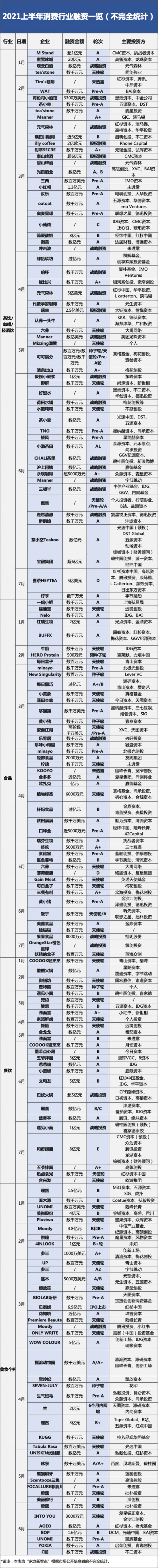 此外,气泡水、低度酒、新茶饮、精品咖啡、植物奶、植物肉、蛋白棒……“所有消费赛道都值得重做一遍”,每个消费细分赛道都涌入了一批投资人。